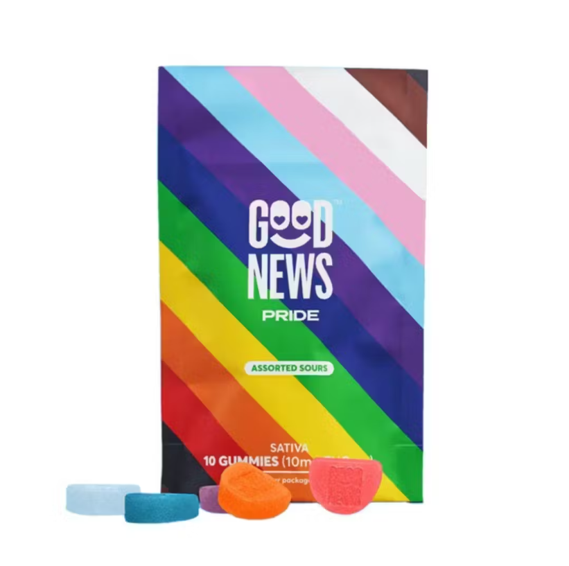 pread more love with Good News Pride Gummies. 5mg per gummy that represent a rainbow of assorted sour flavors. Perfect for waving your flag proudly and finding a higher level of inclusion.