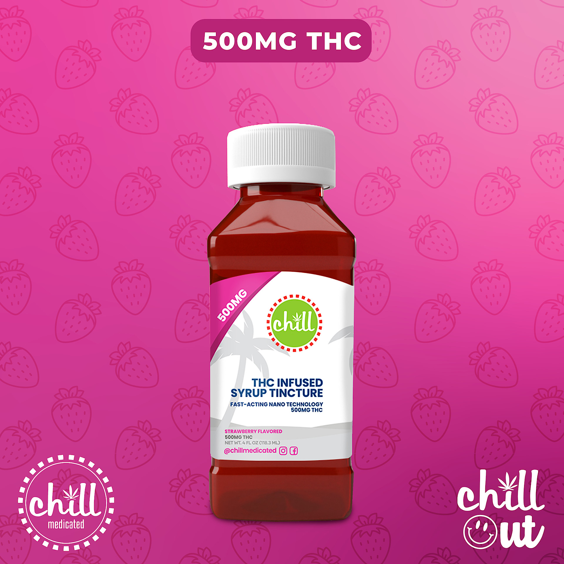 From Chill Medicated: Possesses a refreshing fruity Strawberry taste. Tropical, fruity, and sweet. Carefully crafted by chemists, our nano-emulsified medicated syrup is fast-acting as it is water-soluble. Our syrup is sourced, produced, and tested locally.